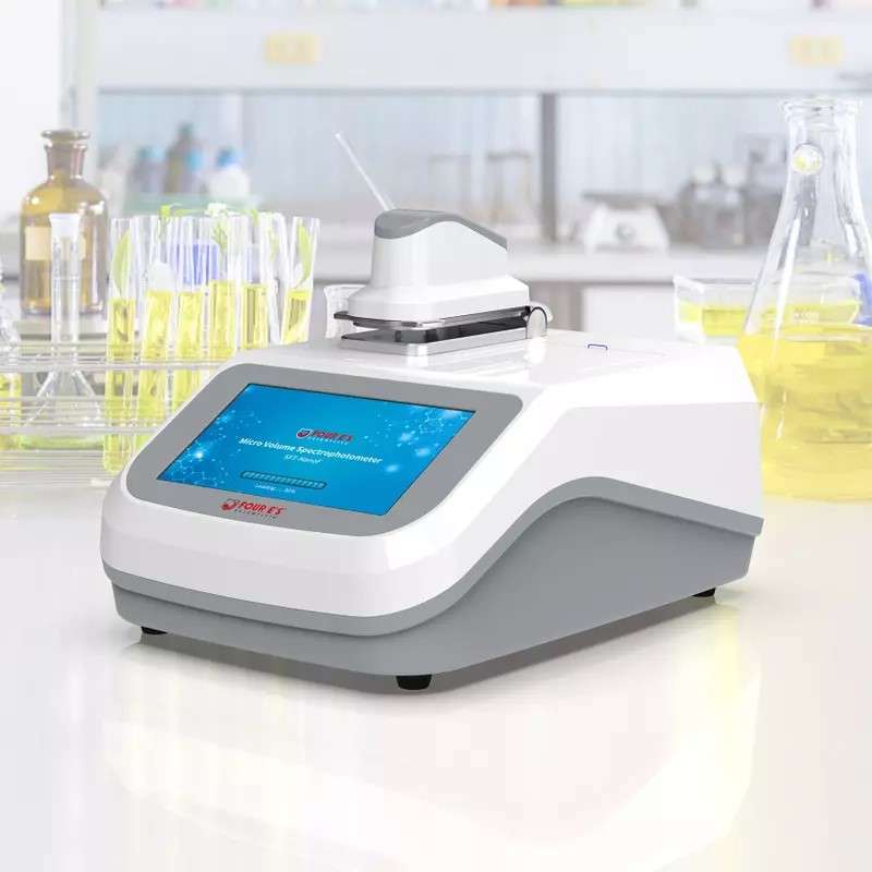 The Micro volume spectrophotometer (UV-Vis) with a built-in 7-inch color touch screen can perform all detection functions without connecting to a computer. The device has a full spectral range (190-800nm) for accurate quantitative analysis of DNA, RNA, proteins, etc. It comes with an intuitive user interface for easy operation.